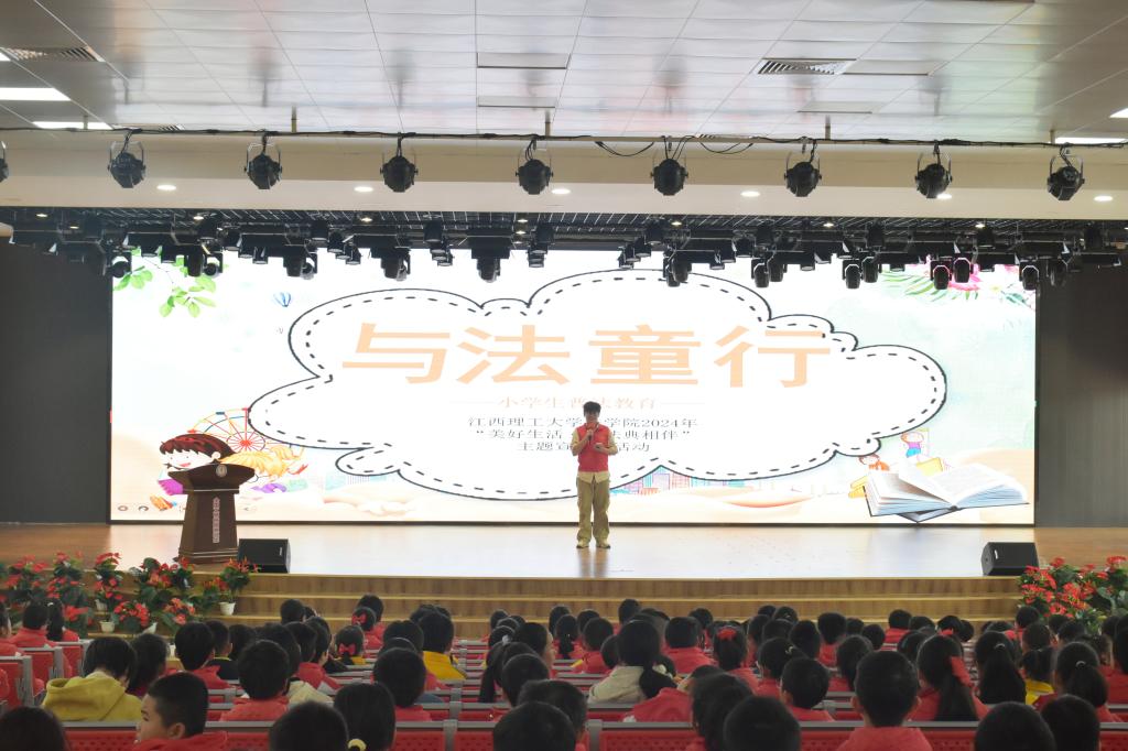 “同学们,遇到欺凌我们要学会用法律武器来保护自己……”12月3日,法学院的普法志愿者们在赣州市文清路小学给小学生们上了一堂生动的法治教育课。宣讲团深入浅出的讲解,结合了生动的案例和情景剧表演,让孩子们了解在面对一些危险情况时要如何学会自救。通过知识有奖问答,孩子们还了解了哪些是法律禁止的行为。一个个小法官、小检察员、小律师在模拟法院审判过程中展现着自己的风采,在角色扮演中感受着法律的严肃与公正。“小法律人”们在志愿者的带动下饶有趣味地学习宪法知识,在他们心中种下了一颗颗法治的种子。
