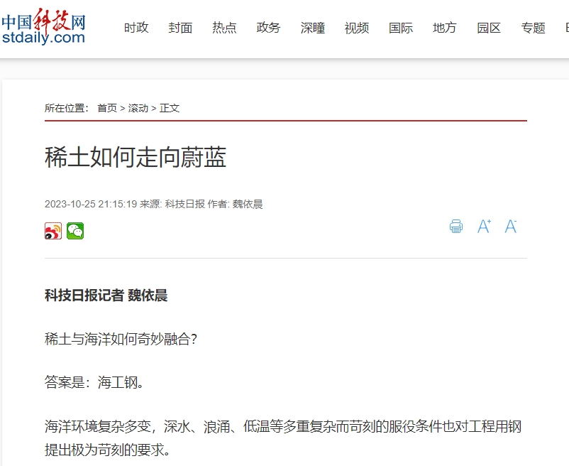 10月25日,记者采访获悉,该高性能海工钢的最大创新点,莫过于借助新钢丰富的技术储备,成功在钢种冶炼中添加了稀土氧化物。
