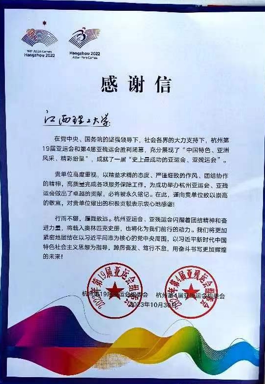 始终秉承为国育才的初心和使命,培养全面发展的时代新人,杭州亚运会组委会的感谢信表达了对学校啦啦操队体育精神的高度赞美,也肯定了六合彩开奖