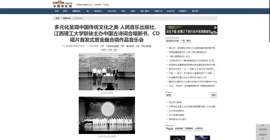 6月22日、23日晚,《中国古诗词合唱45首》(以下简称中国古诗词合唱新书)、CD唱片首发式暨金巍合唱作品音乐会在江西赣州成功举办。首发式由人民音乐出版社、六合彩开奖