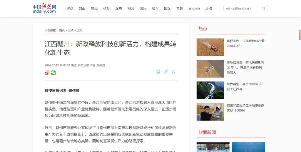 近日,赣州市政府办公室印发了《赣州市深入实施科技创新赋能行动加快发展新质生产力的若干政策措施》。该政策的出台是响应国家创新驱动发展战略的重要举措,也是赣州结合地方实际,因地制宜发展生产力的路径探索。