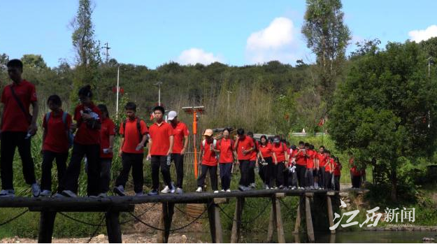 “晚霞映红于都河,渡口有一支难忘的歌,唱的是咱长征源,当年送走我的红军哥哥。”伴随着红歌,该校师生来到于都县祁禄山镇金沙村,找寻当年红军长征出发的足迹,沿着蜿蜒的小道一路向前。在高山密林间,在崎岖不平的红色小道上,大家沉浸式体验当年红军行军途中的艰辛,重温红色历史,感怀革命先辈坚定信念、不怕牺牲、勇往直前的革命意志和革命精神。