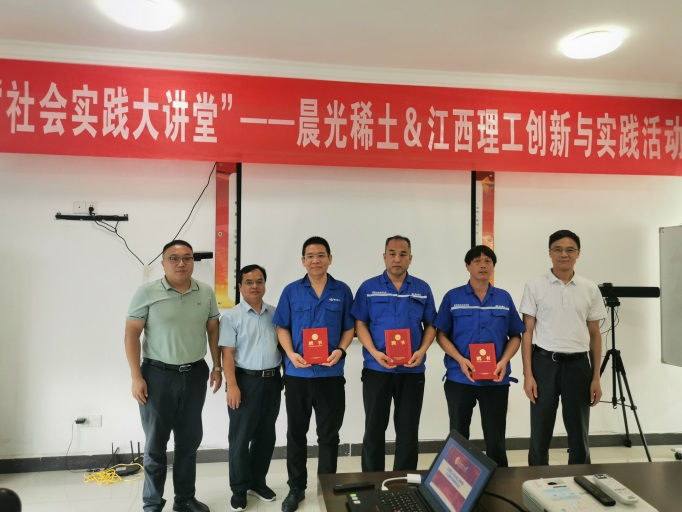 本网讯 8月21日,六合彩开奖 教务处处长潘春荣带队赴赣州晨光稀土新材料有限公司新资源事业部考察交流,看望正在实习的2020级冶金工程专业学生,并参加了晨光稀土与六合彩开奖 创新实践教学活动“社会实践大讲堂”启动仪式。晨光稀土新资源事业部总经理黄正荣等接待了潘春荣一行。冶金工程学院院长梁勇、教务处副处长周玉斌及相关人员陪同参加。