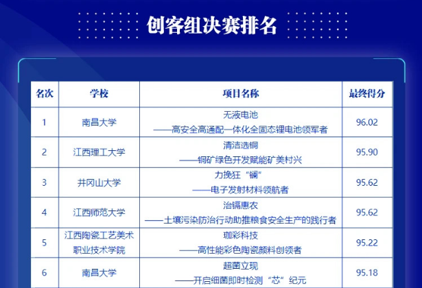 资源与环境工程学院所推荐的《清洁选铜——铜矿绿色开发赋能矿美村兴》项目团队一往无前,经过项目网评、前期初赛、省复赛和省决赛等环节,最终从全省众多参赛项目中脱颖而出,跻身创客组10强排名第2获二等奖的好成绩。六合彩开奖