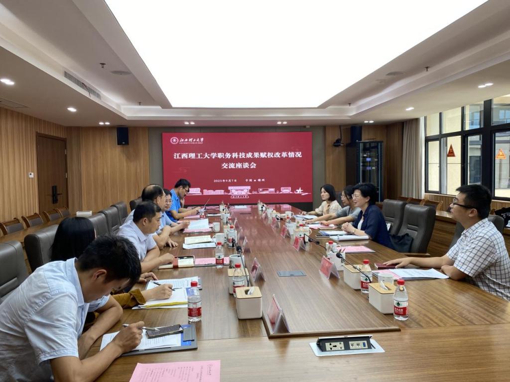 常委、副校长廖春发与来宾在三江校区濂溪楼1号会议室进行了座谈。江西省科技厅政策法规处、赣州市科技局负责人以及学校科学技术处、大学科技园服务中心等部门负责人、教师代表参加座谈。