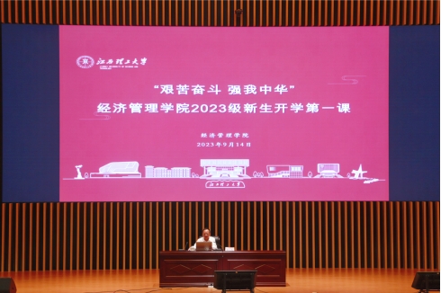 新学期,新愿景,新征程。入学第一课强化了2023级新生的责任意识和使命担当,增强了认同感和归属感,为新生在校园的美好生活开好了新篇。经济管理学院将坚守“立德树人”根本任务,持续做好学院“三维六方”红色育人体系、“金草鞋”实践育人、F4栋“一站式”学生社区、培铸书院、“说赣就赣”等育人品牌项目,为服务地方和行业发展输送更多高质量人才。