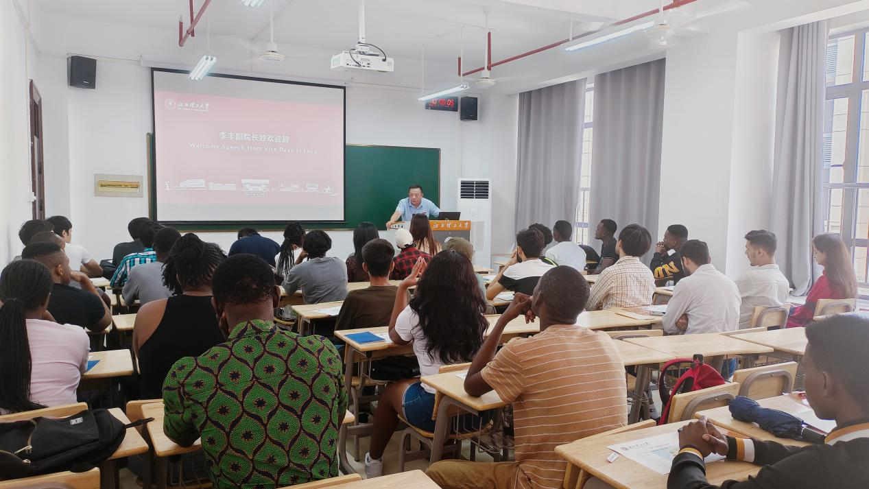 入学教育第一课上,国际教育学院廖宇奇、付皓骏老师给国际新生介绍了学习管理规定、学业考核要求、宿舍安全条例、出入境相关法律法规等,让新生尽快融入校园学习生活。