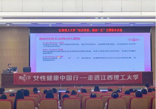 本网讯 为进一步加强女性安全教育,增强自我保护和防范意识,促进其身心健康发展,9月21日,电气工程及自动化学院、理学院、土木与测绘工程学院在三江校区图书馆报告厅联合举办了“远离伤害,健康一生”主题教育讲座。本次讲座特邀赣州市妇幼保健院罗丽萍主任医师担任主讲嘉宾,近300名在校女生参加讲座。