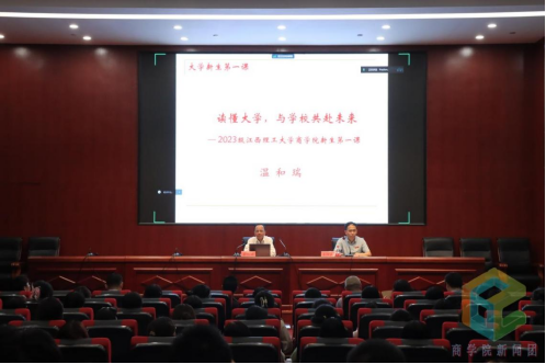 副书记、校长温和瑞在南昌校区综合实验楼A308报告厅为商学院2023级新生上开学第一课。商学院党委书记陈小云主持。