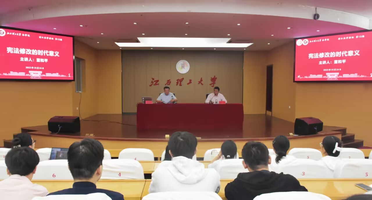 第13期清江法学讲坛,在红旗校区图书馆报告厅作了题为《宪法修改的时代意义》的精彩讲座。讲座由法学院院长项波主持,法学院部分教师、学生聆听了讲座。