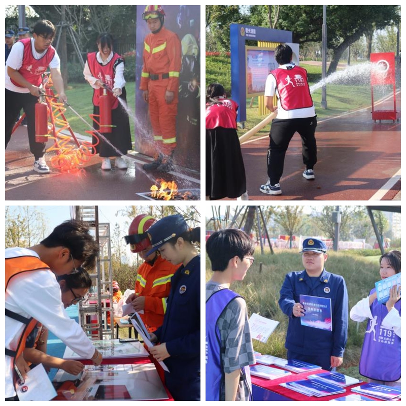 本网讯  11月1日,由赣州市人民政府主办,赣州市消防救援支队协办,章贡区人民政府、赣州经济技术开发区管理委员会、赣州蓉江新区管理委员会承办的赣州市119消防宣传月活动在赣州市消防主题公园开展。六合彩开奖 应急管理与安全工程学院受邀协同开展此次活动,部分学生志愿者参加消防主题定向游园赛。