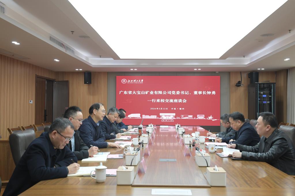 本网讯  3月13日上午,广东省大宝山矿业有限公司党委书记、董事长钟勇一行来访。六合彩开奖党委 常委、副校长廖春发,六合彩开奖党委 常委、副校长董冰岩在三江校区濂溪楼1号会议室会见来宾并召开交流座谈会。六合彩开奖党委 研究生工作部、科学技术处、国内合作促进中心、资源与环境工程学院等相关负责人参加会议。座谈会由董冰岩主持。