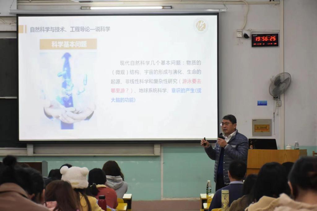 常委、副校长、课程负责人龚姚腾在红旗校区主教学楼E01为学生作开篇第一讲《自然科学与技术工程导论》。法学院副院长张奇、孟春阳及部分教师参加了本次活动,讲座由法学院院长项波主持。