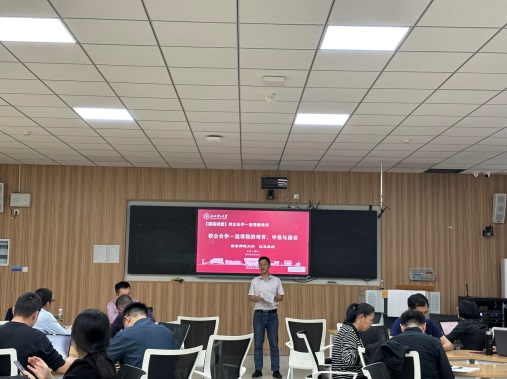 沈飞教授从相关概念和内涵、产教融合的产生与发展、产教融合型一流课程建设指标体系、校企合作一流课程立项要求及建设四个方面作了分享。与会人员就校企合作一流课程的申报形式、具体实施及条件保障等事项开展了热烈的讨论。