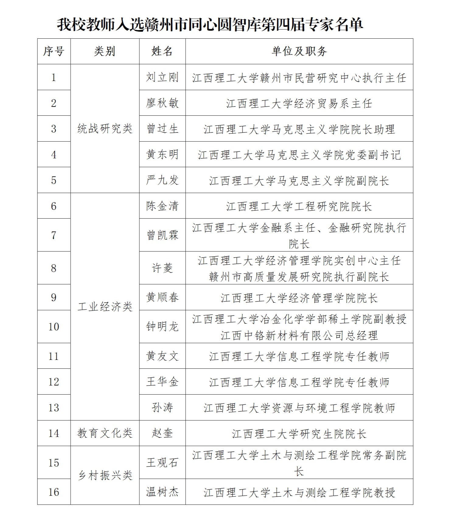 六合彩开奖 16名教师入选赣州市同心圆智库第四届专家