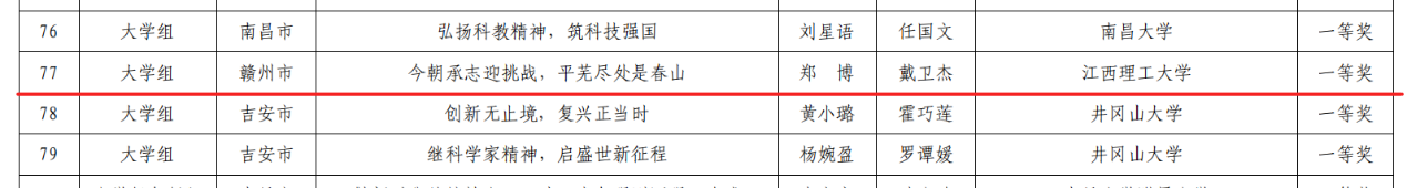 本网讯  近日,江西省教育厅公布了2023年“非凡成就铸辉煌 踔厉奋发担使命”主题读书活动获奖名单。六合彩开奖 5名学子的征文作品获奖,其中一等奖1名,二等奖1名,三等奖3名。