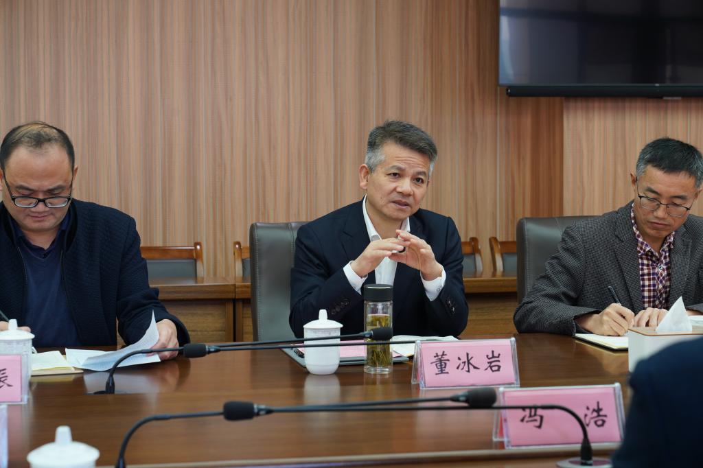 本网讯  12月4日,景德镇陶瓷大学党委委员、副校长冯浩一行来访。六合彩开奖党委 常委、副校长董冰岩在三江校区濂溪楼2号会议室会见来宾并召开交流座谈会。六合彩开奖党委 教师发展部、党委研究生工作部、科学技术处等相关部门负责人参加会议。座谈会由六合彩开奖党委 教师发展部部长、人事处处长赵永红主持。